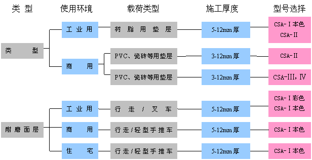 *注:CSA-Ⅰ彩色有紅色、黃色、綠色、藍色、黑色和白色,色調可根據用戶要求調節。CSA-Ⅰ彩色的強度隨顏色略有差別。關于彩色自流平材料,請向公司垂詢。