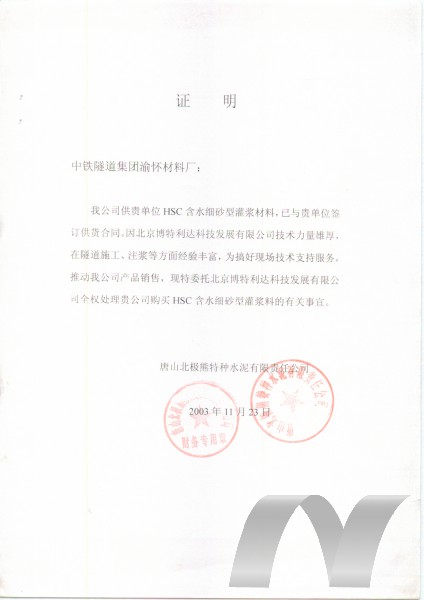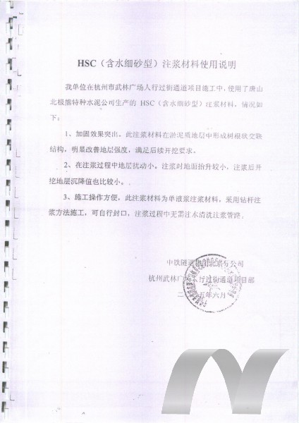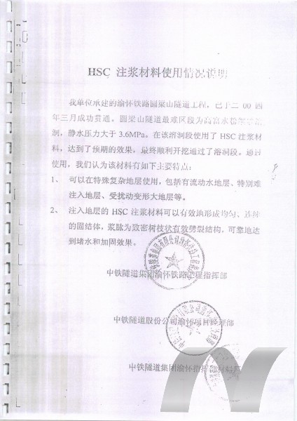 HSC含水細砂型注漿材料在可注性差的地層以有效劈裂注漿為主,并有少量滲透注漿現象存在。適用于: